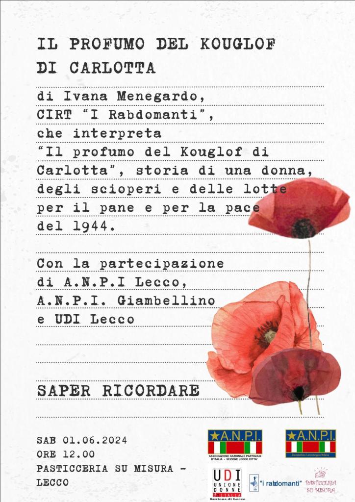Postato il 31 Maggio 202420 luglio 2024 di ivanamenegardo IL PROFUMO DEL KOUGLOF DI CARLOTTA LECCO 1° Giugno 2024 Un articolo è apparso su LECCOONLINE a proposito di questa lettura.